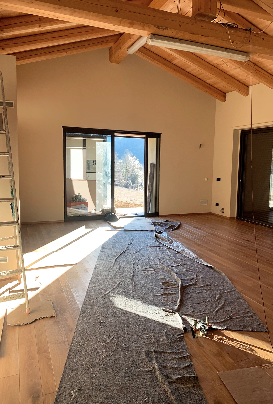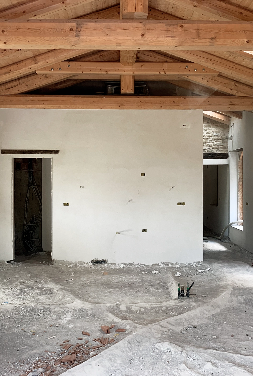 Due piani: ampia zona giorno irrorata di luce naturale per accogliere una cucina su misura in rovere antico, salotto scaldato da ampio focolare e camera da letto con bagno en suite.