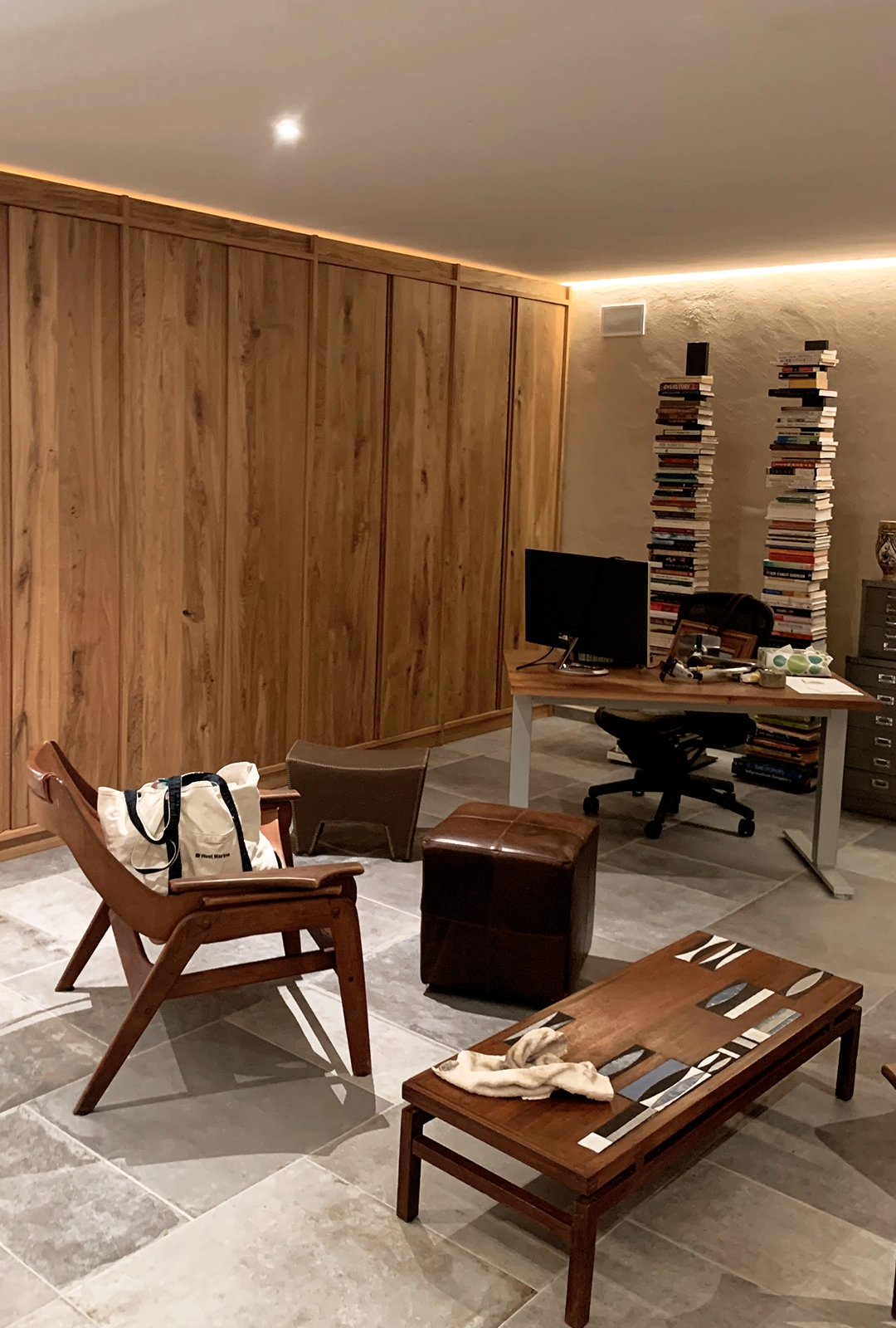 Piano inferiore dedicato al lavoro ed alle passioni culinarie.