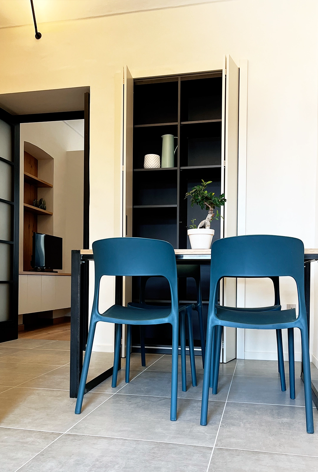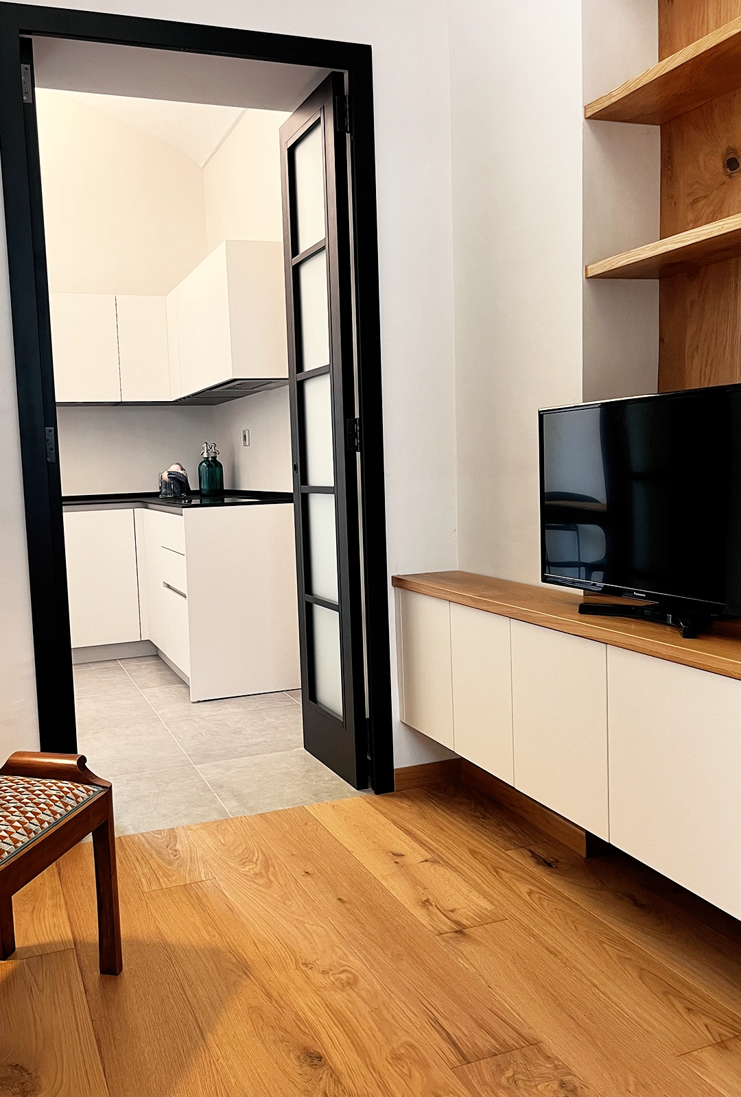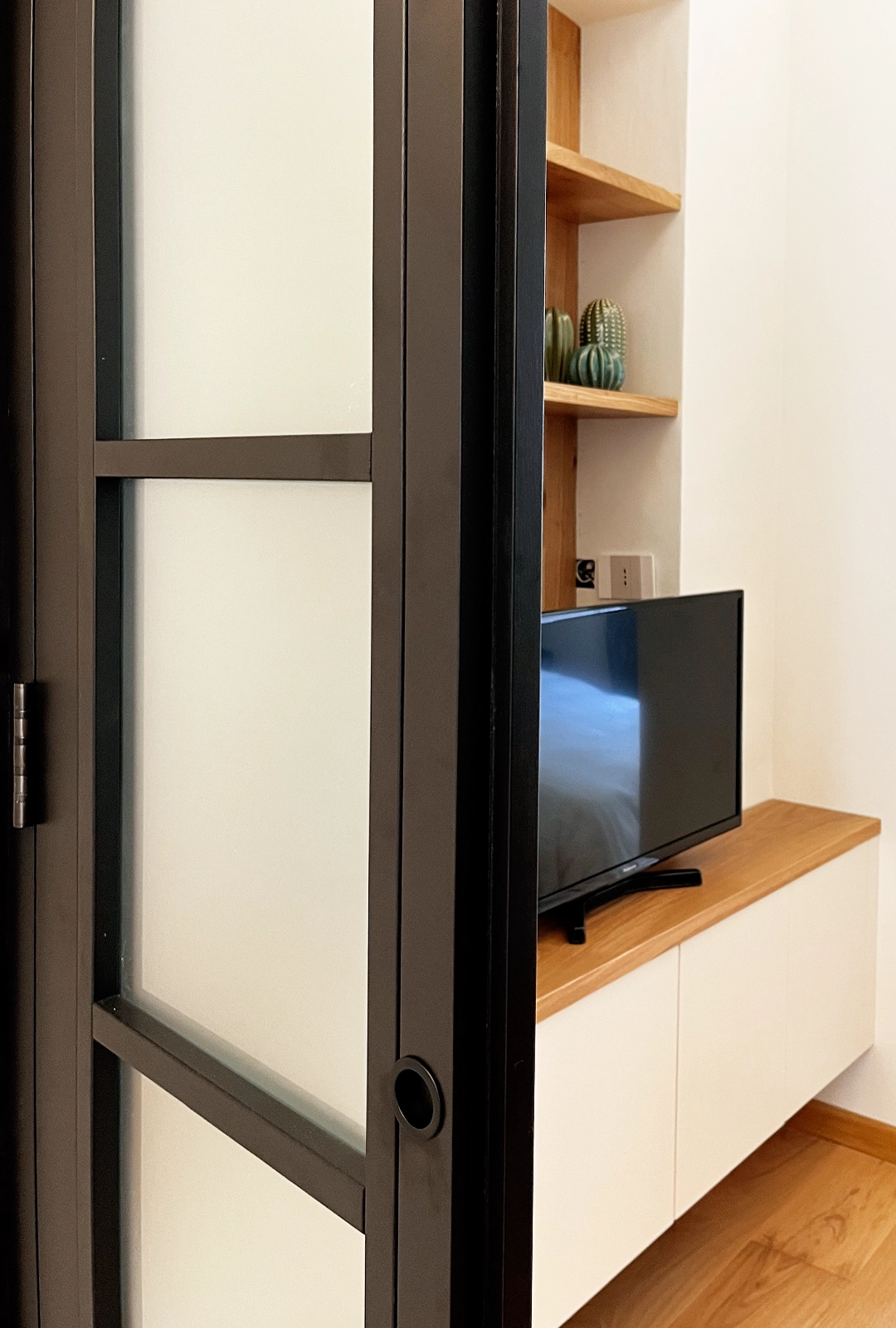 Per i nostri clienti abbiamo ottimizzato gli spazi in modo smart e preciso, ricavando da pochi metri una cucina, una camera, un bagno ed un accogliente TV corner.